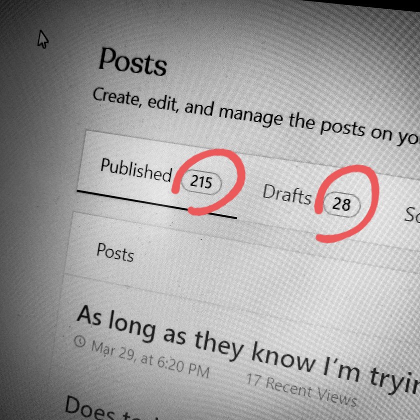 I sort of love the Drafts folder. It’s a really powerful reminder that life isn’t Instagram. That humans, as magical as they are, aren’t really magical. That you literally will not get it right a thousand times, and it doesn’t matter.